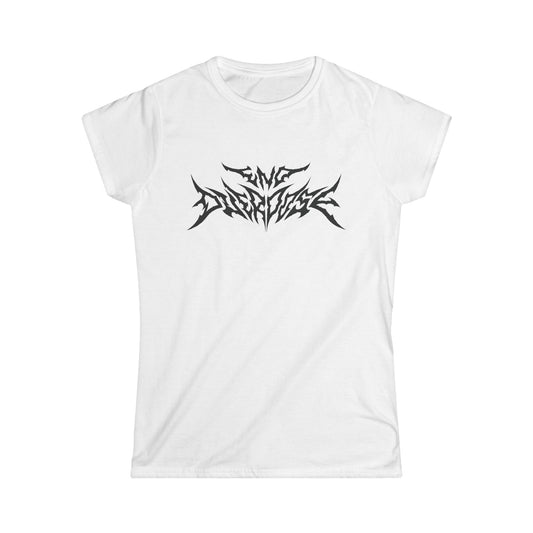 Heavy Metal Logo Women's Tee — White, Black, Light Blue, & Azalea Crewneck